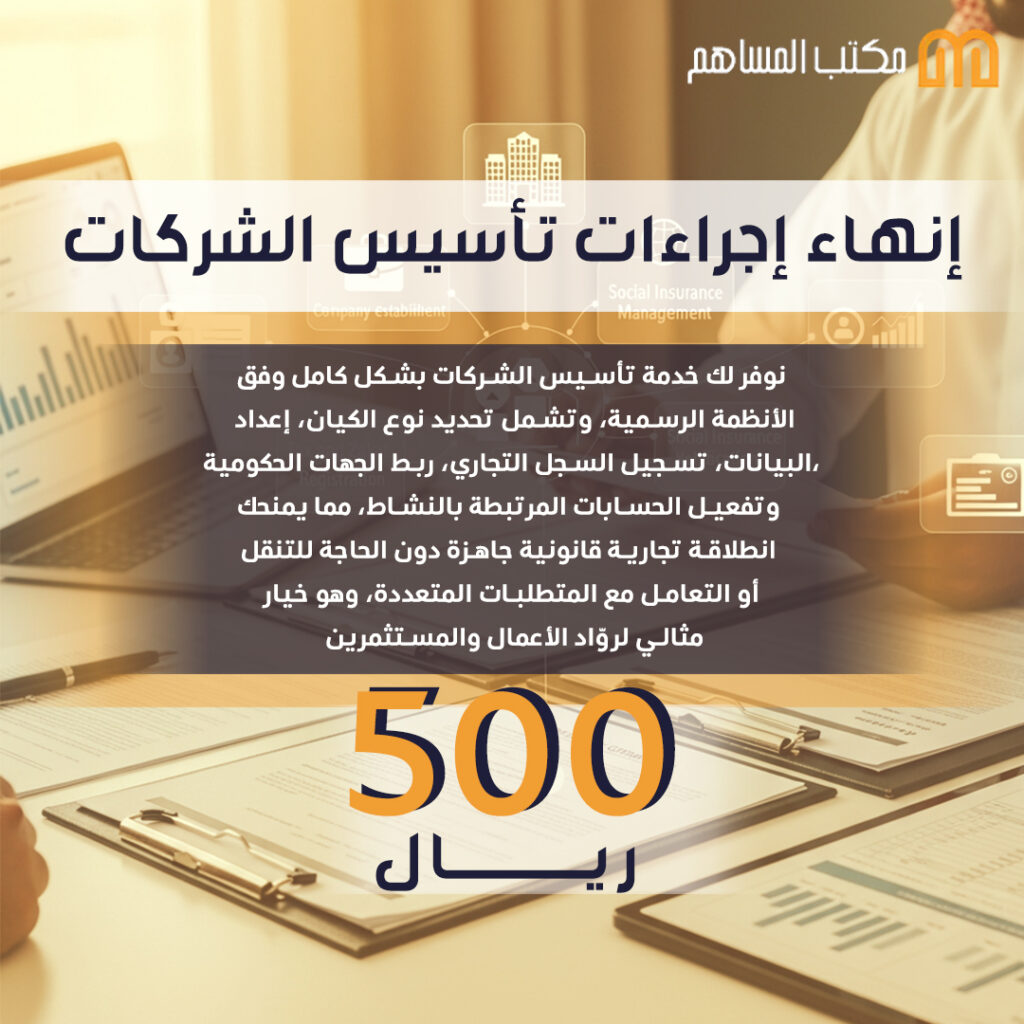 من تأسيس الشركات إلى التأمينات والزكاة، نخدمك باحترافية وبأسعار رمزية دون أي تعقيدات