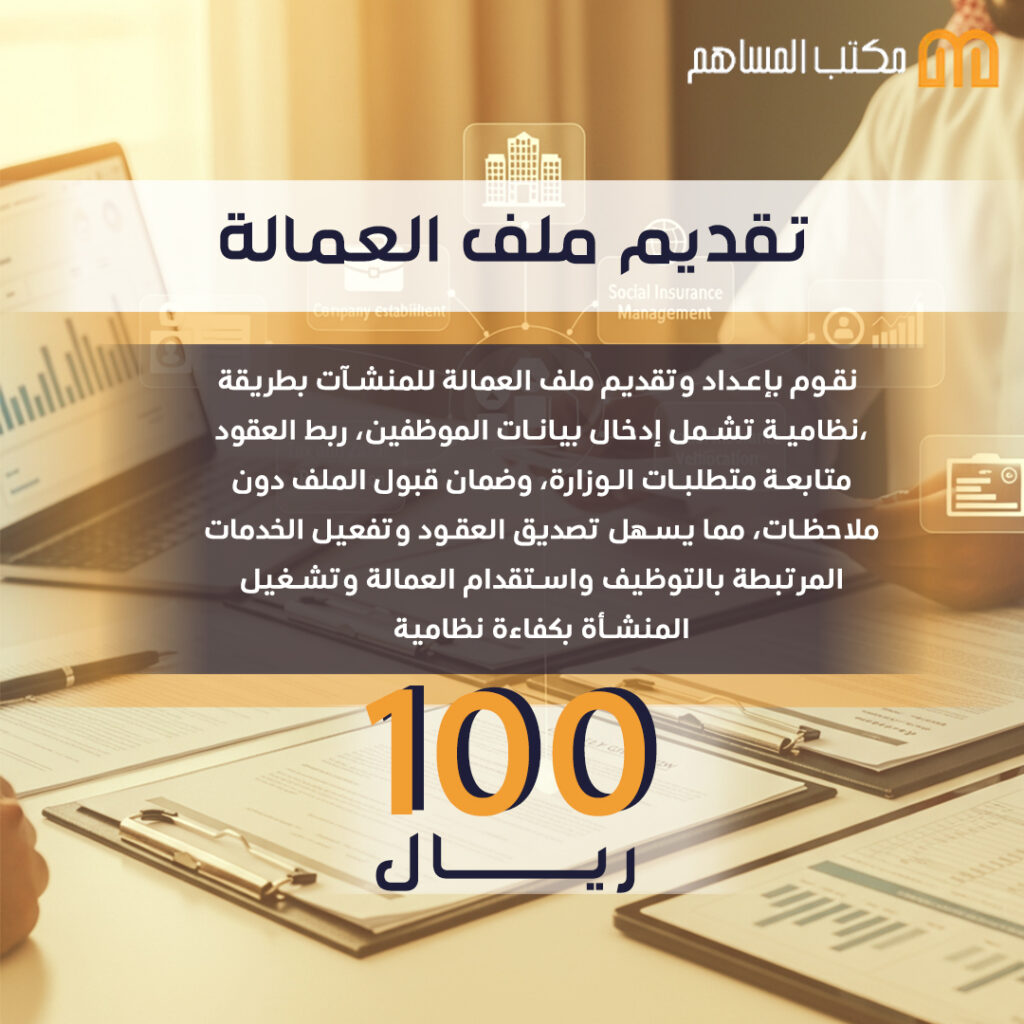 خدمة تقديم ملف العمالة من "المساهم" تتيح لأصحاب المنشآت فتح ملف رسمي في وزارة الموارد البشرية لتمكينهم من التوظيف واستقدام العمالة، بكل سهولة ودقة .
